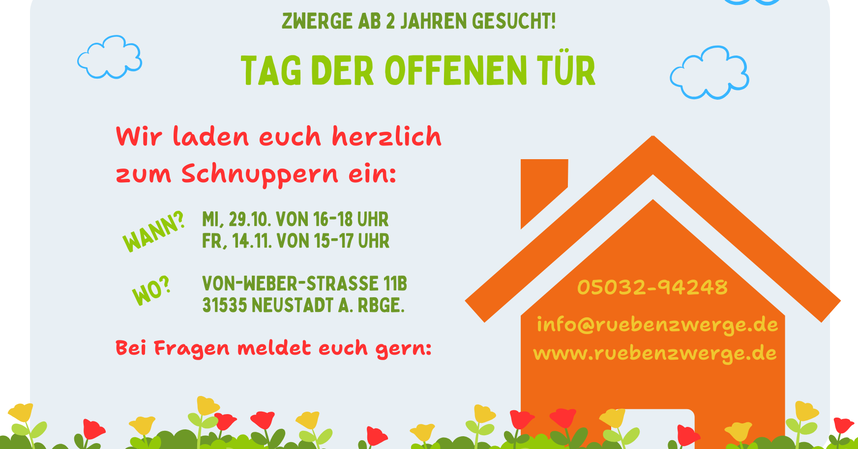 Die Rübenzwerge sind eine zentral in Neustadt am Rübenberge gelegene Kindertagesstätte. Neben den Plätzen für die Kindergartenkinder bieten wir auch Krippenplätze ab zwei Jahren an. Die Betreuung der bis zu 20 Kinder erfolgt in einer gemeinsamen Gruppe von vier pädagogischen Fachkräften. Zusätzlich besuchen und unterstützen uns stetig Praktikanten und Auszubildende sowie die gesamte Elternschaft.
